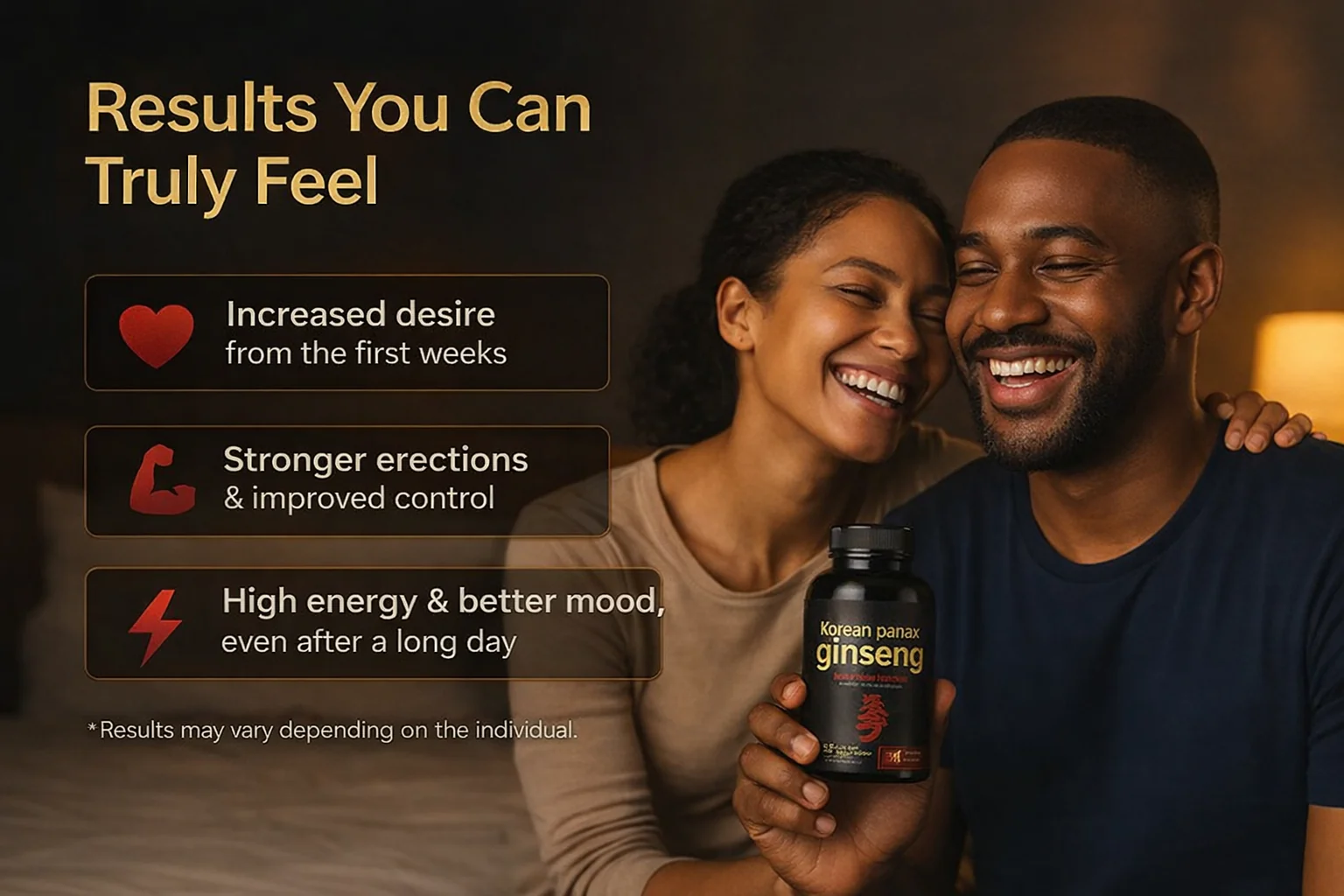 Stress, fatigue, and an exhausting lifestyle can gradually steal your energy… and even your desire. Do you no longer recognize yourself? Korean Panax Ginseng works where fatigue takes hold to awaken your body and your libido.
