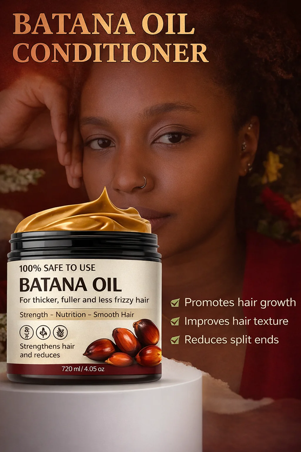 By incorporating Batana oil into your hair care routine, you'll experience a gradual yet visible transformation: strong, healthy, and radiant hair day after day.