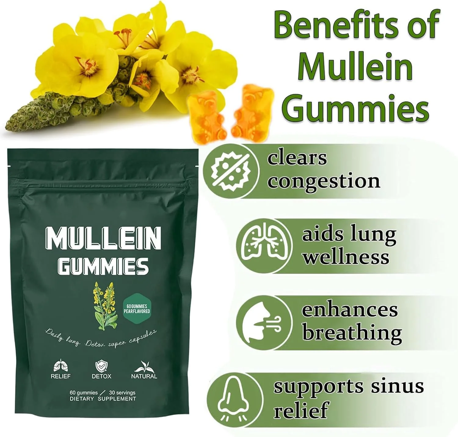 Don't let heavy breathing ruin your day. Order Mullein Gummies today and discover the pleasure of breathing fully and naturally.