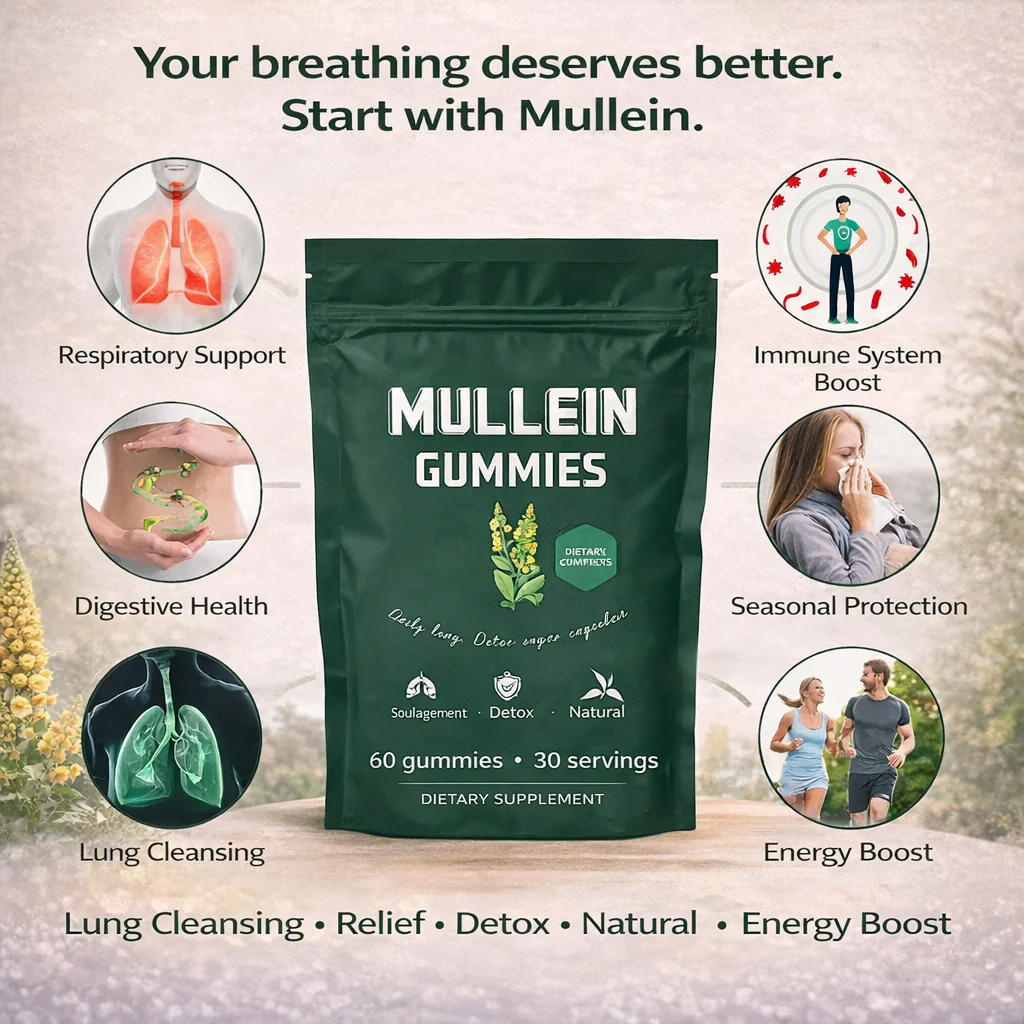Your lungs deserve the best. Mullein Gummies help support respiratory health, so every breath is lighter, more natural, and more comfortable.
