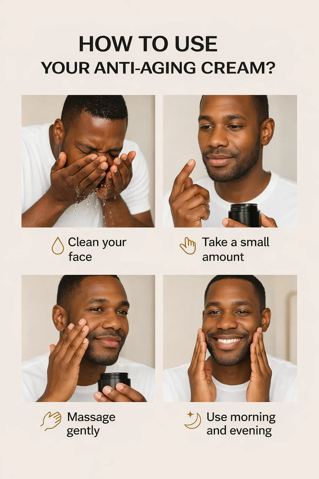 Using the cream is quick and simple. Just apply a small amount to clean skin on your neck and gently massage in upward circular motions until fully absorbed. This helps the ingredients penetrate deeply and work more effectively.